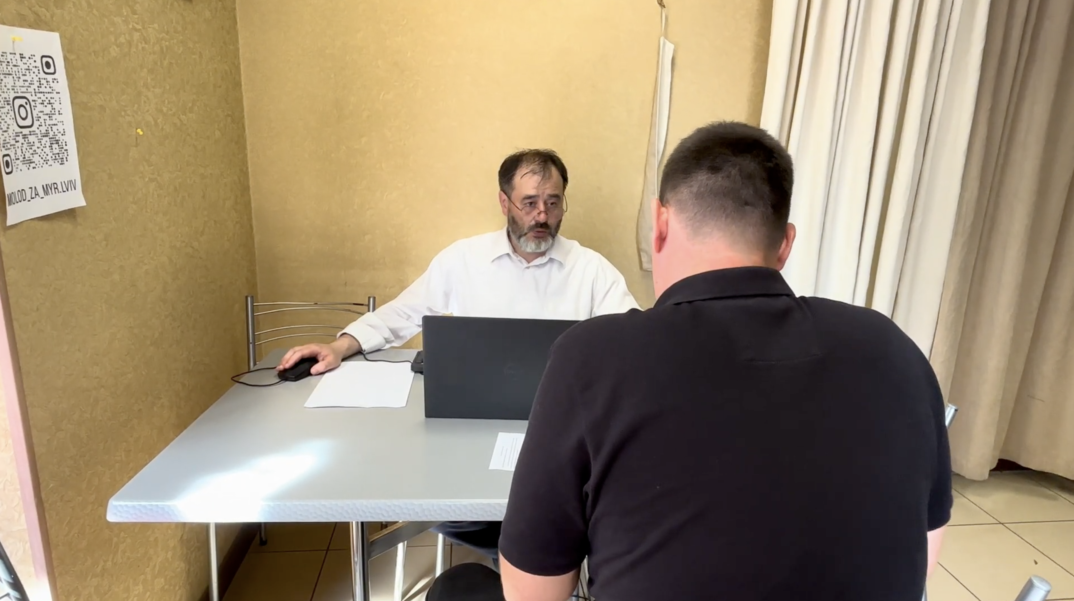 Unmittelbar nach der Lieferung der Powerbanks und USB-Leuchten lädt er uns ein, bei ihm und seinem Assistenten Platz zu nehmen IRINA (Name überprüfen!), die auch sichtlich erschüttert und besorgt ist, weil ihr Sohn an der Front ist: Jede Nachricht von der Front, die in den Zeitungen erscheint, ist möglicherweise eine tödliche Nachricht.